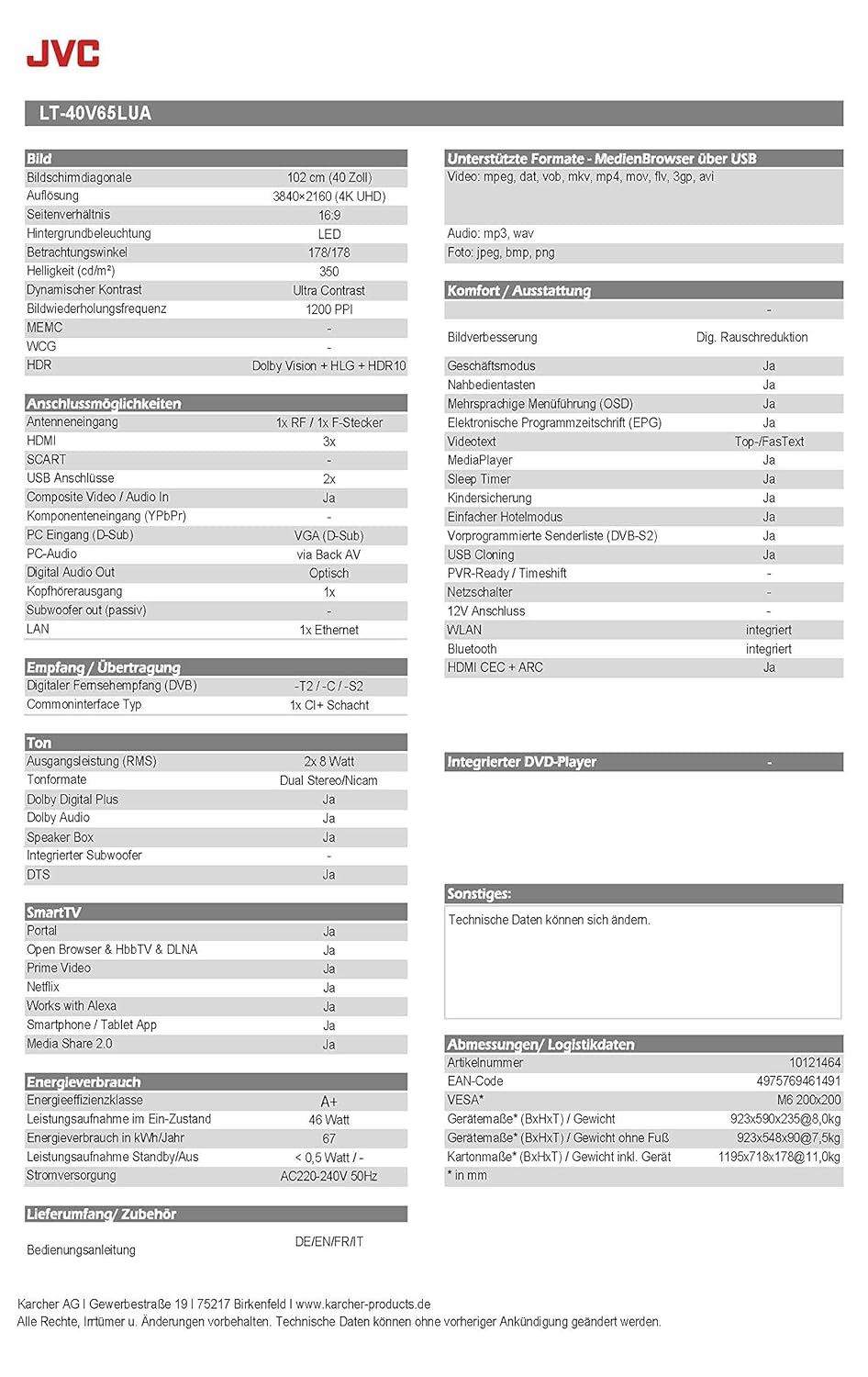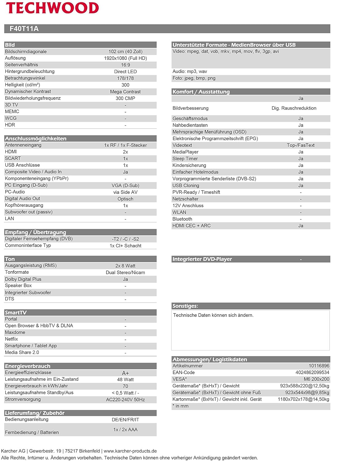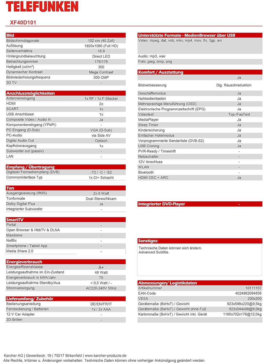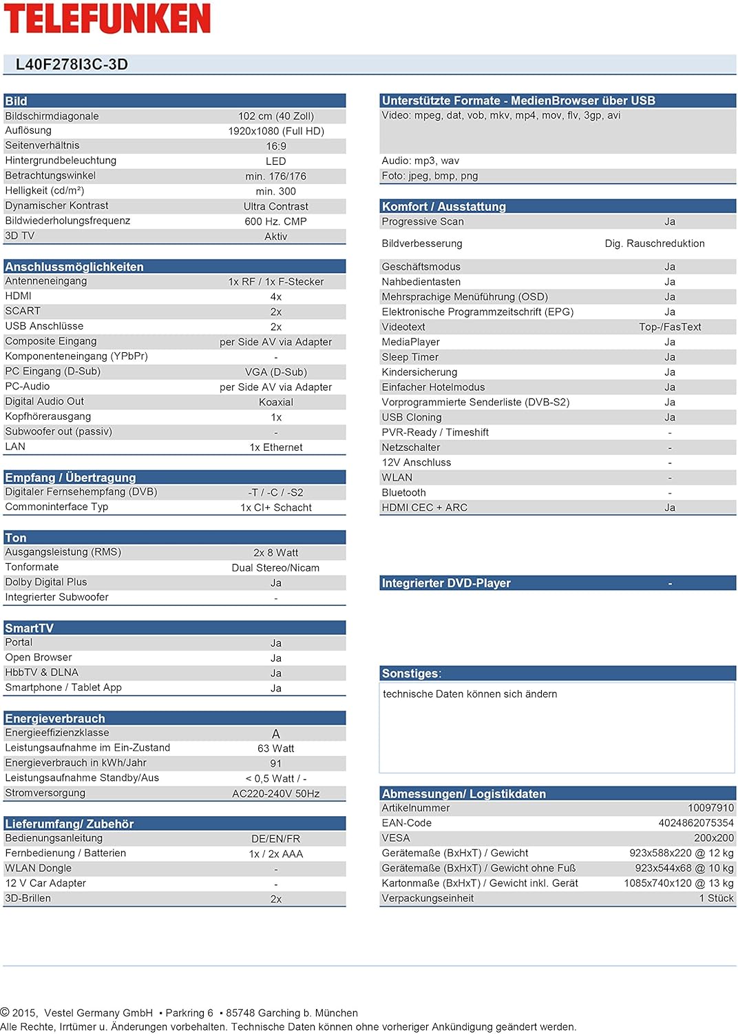 40 Zoll Fernseher Maße